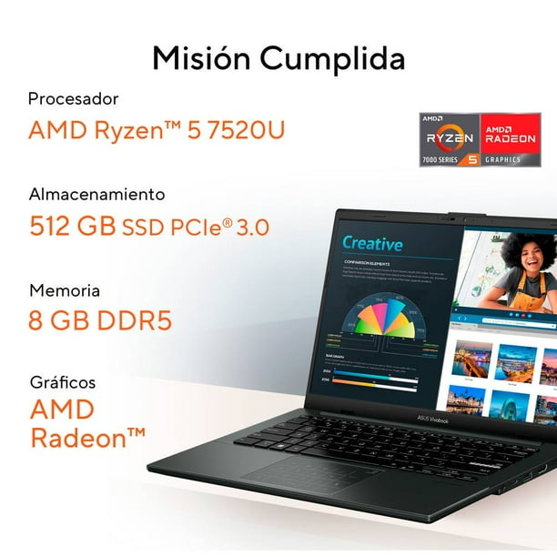Combo ASUS VivoBook Go 14 con AMD Ryzen 5, 8 GB RAM y 512 GB SSD, incluye mochila y mouse por $9789.00 MXN.